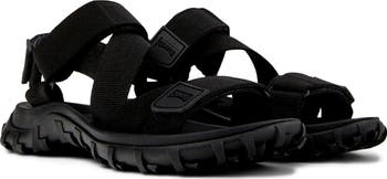 A sporty silhouette inspired by '90s all-terrain footwear defines this rugged sandal featuring multidirectional tread on the Vibram® sole.
