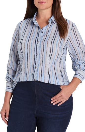 Painterly stripes bring watercolor-inspired detail to this cotton button-up blouse cut in a relaxed silhouette for everyday versatility.