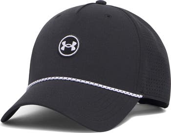 Durable woven fabric, perforated panels and an interior sweatband ensure easy comfort when you wear this golf cap that's finished with a front embroidered logo and rope detail.