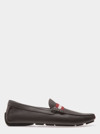 These driver shoes are made from grained leather. They are detailed with a Bally ribbon saddle strap
