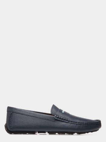 These driver shoes are made from grained leather. They are embellished with a contrasting detail on the saddle strap.