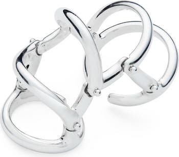 This striking Armour Ring is a bold statement piece, designed to add an edgy touch to any outfit. Its unique double-hinge mechanism allows for easy movement and comfort, blending functionality with style. Handcrafted from 925 sterling silver with a rhodium overlay, it ensures durability and lasting shine. Perfect for those who love standout jewellery, this fully adjustable ring is available in medium and large sizes.