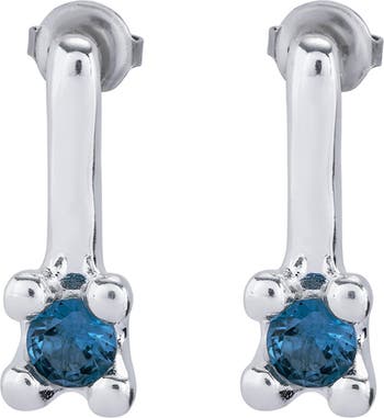 Sterling silver-plated mid-sized earrings with blue zirconia.