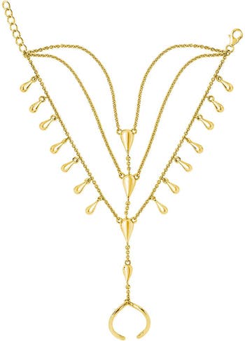 Introducing a bold and innovative design from Lucy Quartermaine's iconic Drop Collection—now available in luxurious gold vermeil. This hand chain offers a touch of glamour and elegance to your everyday look. Combining a bracelet and ring in one striking piece, it’s designed for comfort and versatility. The gold vermeil coating adds a radiant finish, while ensuring long-lasting beauty.