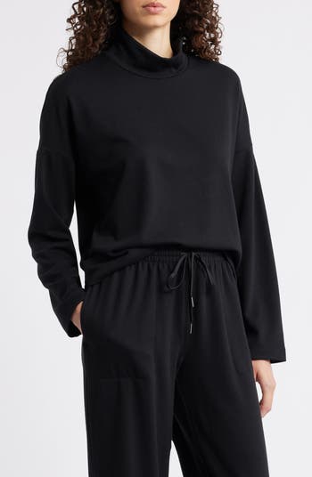A loose turtleneck keeps you comfortably cozy in this stretch-jersey sweatshirt that elevates your lounge look.