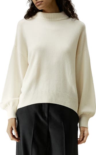 Fashioned from a sumptuous blend of ultra-fine merino wool and cashmere, this non-restrictive, loose-fit sweater with a drop shoulder and bubble sleeves showcases a ribbed collar, wrist, and hemline, and can complement any bottom for effortless class.