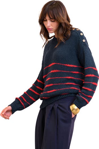 A new-season sweater to revive your layered looks, this Celtic & Co. take on the classic Breton sweater will fast become your favourite.Crafted in slub yarns with a chunky, uneven structure created through random drop stitches, it's trimmed with functioning buttons at the left shoulder for a little extra detail.