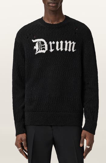 Bring your own drum roll to every entrance you make in this fluffy cotton-bouclé sweater with intarsia lettering demanding attention on the front and back. Small nicks and snags say you've worn it forever and you never get tired of the attention.