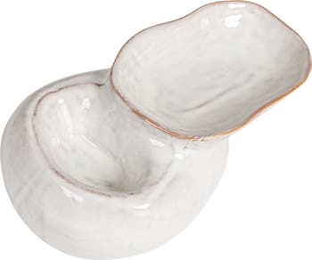 This Dual Harmony Stoneware Pedestal Dish is a testament to refined design and functionality. The white reactive glaze gives each piece a unique character, while the dual sections allow for a creative presentation of every favorite pairing. Standing at 3 inches high, with a length of 8 inches and a width of 4.75 inches, it provides a distinguished platform for every culinary delight. Whether used for special occasions or everyday elegance, this pedestal dish is a versatile addition to the serveware collection, blending seamlessly with any setting. Its food-safe quality and charming appearance make it a valuable and stylish choice for any host.