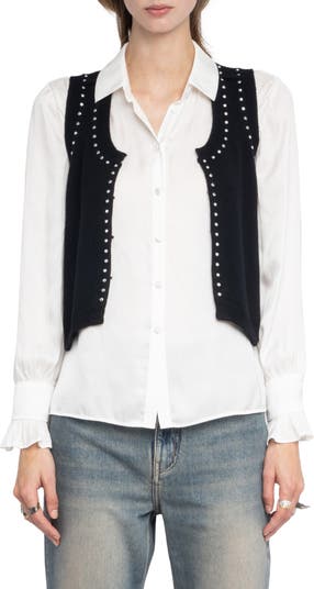 Studded details add a rock-and-roll vibe to a trend-right sweater vest knit from a luxe blend of wool and cashmere.