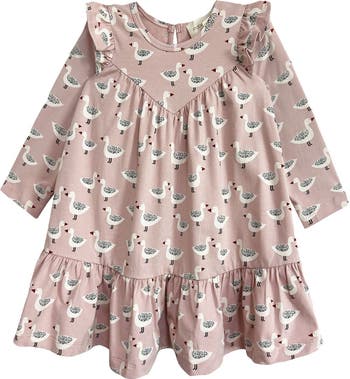 - Crafted from soft, breathable fabric, this piece features an adorable pink backdrop adorned with whimsical white ducks, each accented with charming red beaks and meticulously dotted wings. Designed with long sleeves, ruffled shoulders, and a thoughtful round neckline, this romper seamlessly blends style and comfort for everyday adventures with your little one. Fabric Content & Care 95% COTTON 5% SPANDEX Machine Wash Cold