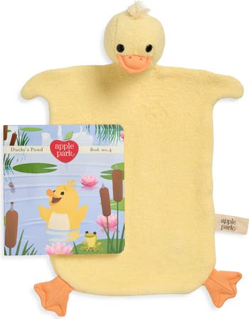 Give the gift of snuggles with this sweet set that includes a whimsical board book and a supersoft Ducky blanket. Little hands can snuggle the organic cotton blanket while learning about swimming, splashing and playing in Ducky's Pond. The plush blanket is designed with baby-safe embroidered details.
