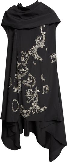 Shimmering sequins and sparkling crystals are intended to evoke sunlight reflecting on dark water as they swirl across the flowy silhouette of this ethereal cocktail dress crafted in an asymmetric silhouette from floaty satin.