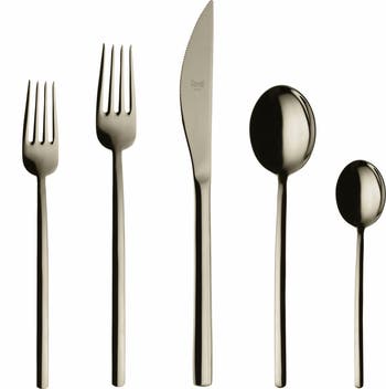 The Due collection by Mepra is flatware that exudes luxury as a lifestyle. Its cool, minimal, sexy style is inspired by influential designers like Angelo Mangiarotti and exalted through generations of tradition, technique and superb materials. They're quite practical, too. The metal undergoes a titanium-based molecular embedding process that makes for dishwasher-safe utensils that won't corrode, oxidize or stain.