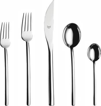 The Due collection by Mepra is flatware that exudes luxury as a lifestyle. Its cool, minimal, sexy style is inspired by influential designers like Angelo Mangiarotti and exalted through generations of tradition, technique and superb materials. They're quite practical, too. The metal undergoes a titanium-based molecular embedding process that makes for dishwasher-safe utensils that won't corrode, oxidize or stain.