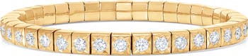 Diamond-centered beads crafted from 18-karat gold gorgeously elevate a stretch bracelet that adds serious shine to your stack.