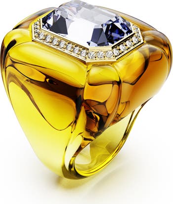 A radiant Swarovski crystal framed by a dainty halo sparkles from this Pop Art–inspired cocktail ring that delivers a joyful burst of color.