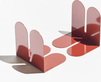 Designed for design lovers and bookworms alike, the Dumbo Bookends bring timeless form and function to any space. The playful double arc shape is a bent solid steel form painted in bold and pastel hues. Available in two sizes to support the entire library. The medium size is ideal for magazines, cookbooks, and novels. The large size is perfect for coffee table and large format books, or even record albums.