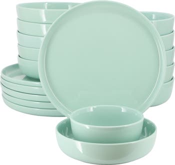 Elama Duncan 18 Piece Porcelain Dinnerware Set, Main, color, Green