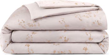 Light-reflecting embroidery softly shines on the textured, lightweight fabric of this bedding set featuring comfy sateen on the reverse.
