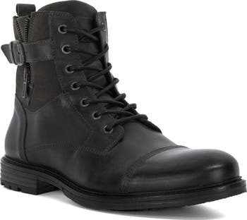 Tonal stitching highlights the cap toe of this tried-and-true moto boot fashioned from smooth leather.