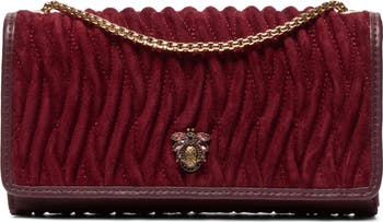 A jewel-encrusted Dune Bug motif stands outs against the wave-inspired quilting on a suede bag featuring a slender profile and suspended from a chain strap that adjusts for shoulder or crossbody wear.