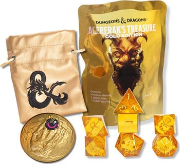 - UNLOCK THE MYSTERIES of the Dungeons & Dragons Acererak's Treasure Packs: Gold Edition, where every pack is a gateway to a D&D adventure. Each pack contains a full 7-piece dice set, metal ability coin, and a quality D&D bag.