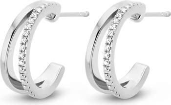 These DPT Antwerp double hoops bring playful structure to your ear stack. Featuring 16 handset diamonds in Sterling silver, they offer the look of multiple piercings with the ease of a single earring.