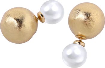 Crafted with shell pearls and gold-plated spheres, these earrings are designed to be worn on both sides.