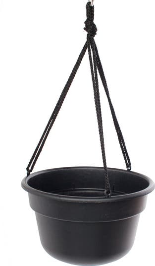 - Includes 1 - Bloem Dura Cotta Hanging Basket 12" Black with matching macramé cord for hanging.