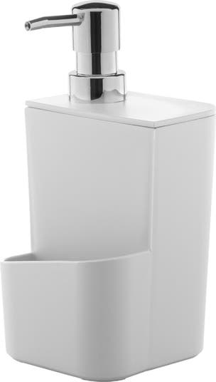 22oz dish soap dispenser with stainless steel pump, sponge holder, and drainage; durable nonslip design keeps sinks tidy, dry, and stylish.