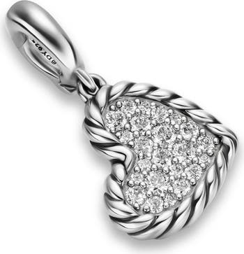 Set any chain aglow with this heart-shaped enhancer that reverses from pavé diamonds to smooth sterling silver for doubled options of opulence.