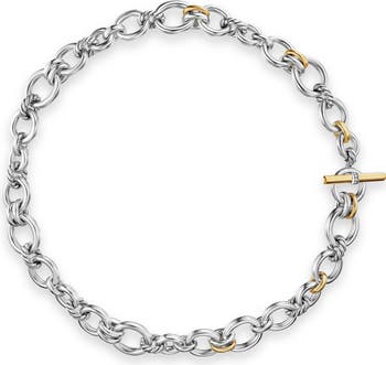 David Yurman DY Mercer® Chain Necklace in Sterling Silver with 18K Yellow Gold and Diamonds, 8mm