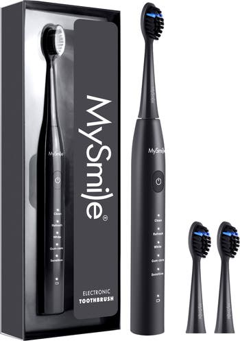 MySmile DY156 Toothbrush: 45,000 VPM, 5 modes, 2-min timer, 60-day battery, waterproof, 3 DuPont heads, 1-year warranty.