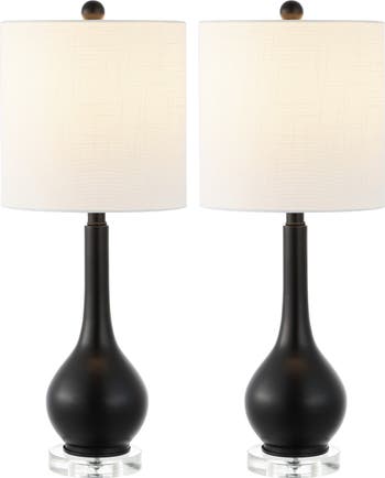 - Mid-century-inspired teardrop base in oil rubbed bronze adds a functional metallic element to any space