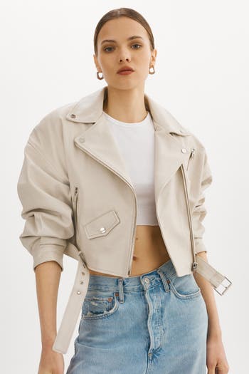 Sometimes, there's no better feeling than commanding the room. Bring back the best of the 80s with this vintage-inspired cropped leather jacket. Featuring classic biker elements and unexpected stand-outs like shoulder pads and balloon pleated sleeves, you'll stand out from the rest when you rock the Dylan. A coin flap pocket and a removable waist belt add unique touches to this lamb leather stunner. A true statement piece, this 80s leather jacket is an instant head-turner.