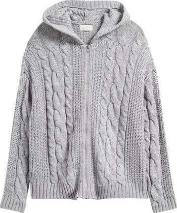 Chunky cable knit brings cozy texture to this zip-front sweater hoodie designed for laid-back layering.