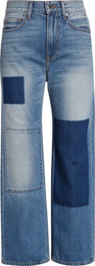 Patchwork panels turn these ankle-grazing jeans into a modern collage as nonstretch denim keeps a straight stance and the sun-faded wash feels lived in.
