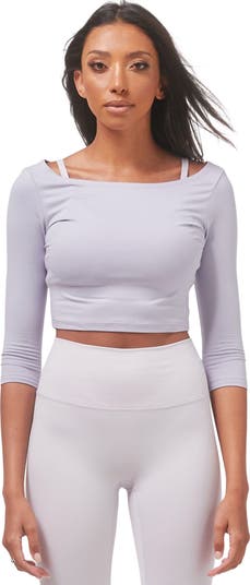Boat neck shoulder is wide enough to wear it as an open shoulder top giving a dynamic and flattering look. Features a cropped length with a slim fit which pairs perfectly with high waisted pants. Wear it to yoga and all your daily activities. Made in our ultra luxurious and soft cozy fabric that has a suede type feel. Light to medium compression allows breathability while giving support.
