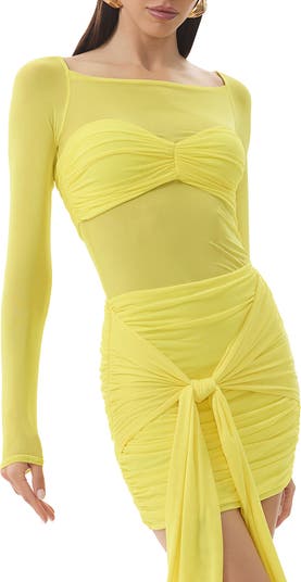 You'll be ready to steal the scene in this sheer mesh top complete with a sweeping sash for extra drama.