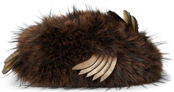 Eagle-inspired detailing glows golden against the fluffy faur fur of a sumptuous slipper that's finished with sparkling crystals.