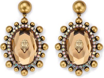 You will love the vintage-inspired look of these dramatic earrings featuring exquisitely designed drops adorned with a faceted center stone, signature eagle head, pavé halo and framed by antiqued beading.