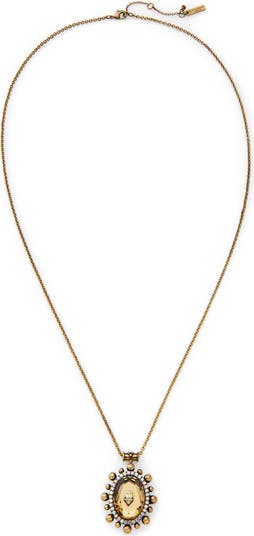 You will love slipping on this vintage-inspired necklace featuring an antiqued long chain and an exquisitely designed locket adorned with a faceted center stone, signature eagle head and pavé halo.