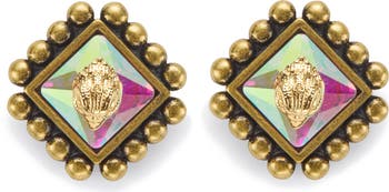 You will love the vintage-inspired look of these exquisitely designed earrings adorned with a faceted center stone, signature eagle head and framed by antiqued beading.