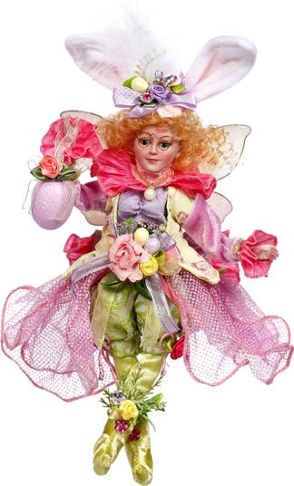 This collectible Mark Roberts Easter Basket Fairy features a charming fairy girl delicately holding a beautifully decorated egg in her hand. Dressed in exquisite pastel fabrics with intricate details, she embodies the joy and elegance of the spring season. Perfect for Easter displays, this enchanting piece adds a whimsical and festive touch to any collection.