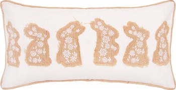 Easter Bunnies in a Row Burlap Embroidered Piped Throw Pillow, 12" x 20"