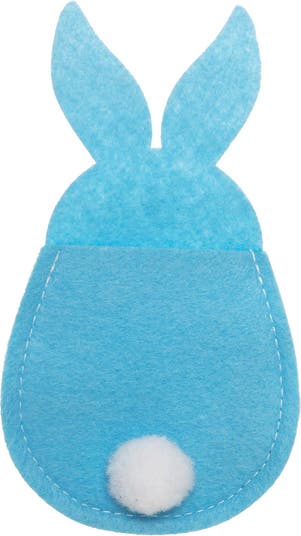 - Set of 6 felt utensil sleeves, each measuring 6.3 inches tall, designed to hold forks, knives, or spoons and featuring an adorable bunny rabbit design with white pompom tail detail that adds dimension and charm to your spring table setting.