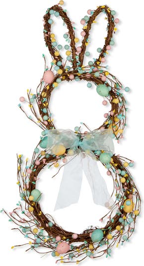 Glitzhome Easter Bunny Shaped Wreath with Eggs & Satin Ribbon Bow, Main, color, Blue