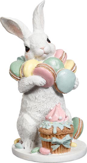 This charming Mark Roberts Easter Bunny décor is crafted from durable resin and stands 9 inches tall, beautifully detailed for seasonal display. The bunny is delightfully posed holding colorful macaroons, adding a whimsical and festive touch to your Easter décor. Perfect for tabletops, shelves, or spring vignettes, it brings elegance and playful charm to any space.