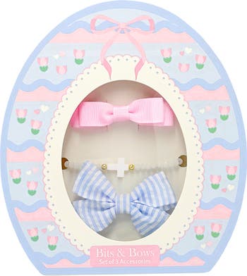 Celebrate the joy of Easter with this charming gift set, thoughtfully curated to delight and surprise. Inside a beautifully decorated Easter egg box, you'll find a pair of dainty, handcrafted bows and a delicate bracelet, perfect for adding a touch of elegance to any little girl's Easter basket.